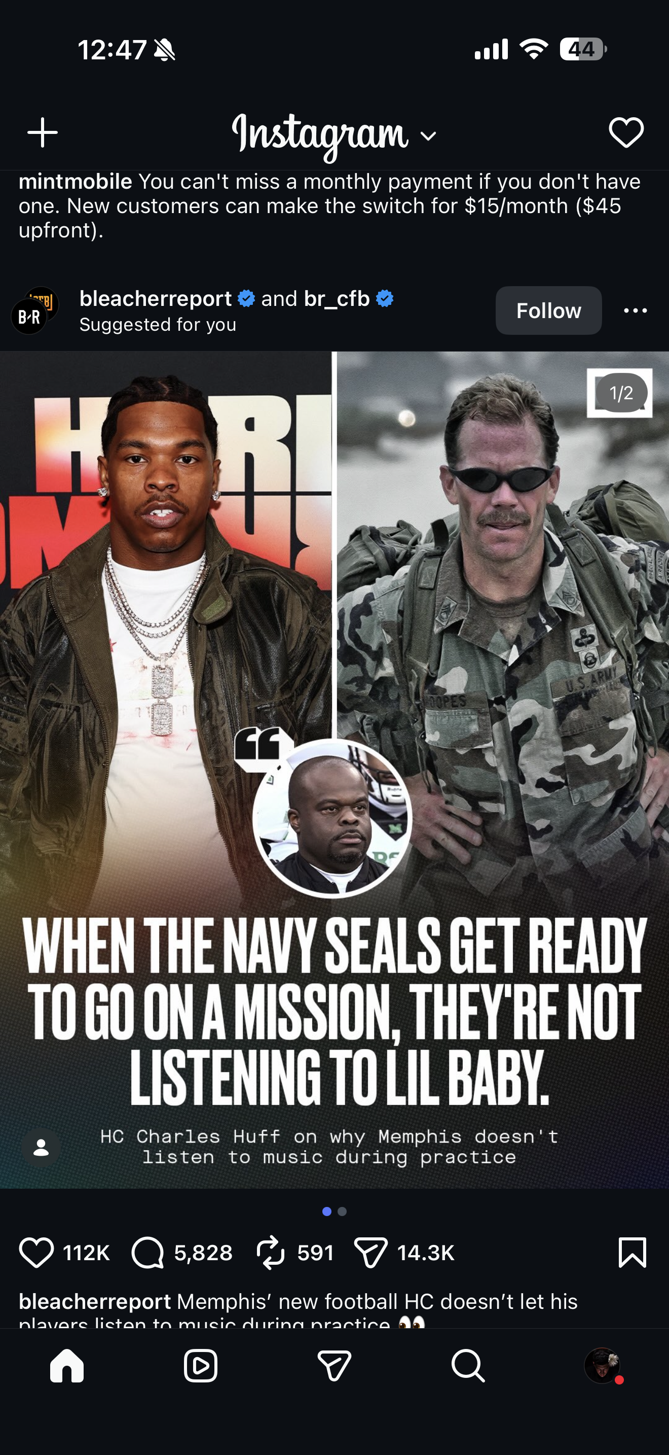 Around lunch, I took a break from cleaning my apartment to eat and scroll through social media a little bit. I mainly use Instagram as my app of choice, and while I mostly follow and see art accounts on my feeds, the occasional pop culture or news posts slip through. The one that stuck out to me was this post by Bleacher Report. These posts have always been interesting to me as they are formatted very similarly to how traditional news agencies make their posts. This, for me and I'm sure many others, throws me off because it forces me to actually check and verify who it's from and what they are talking about. For this post specifically, as a member of the military, I found the coach's quote and thoughts quite funny and objectively false since a vast majority of us, even special operations forces, do in fact listen to all kinds of music while working out and training.